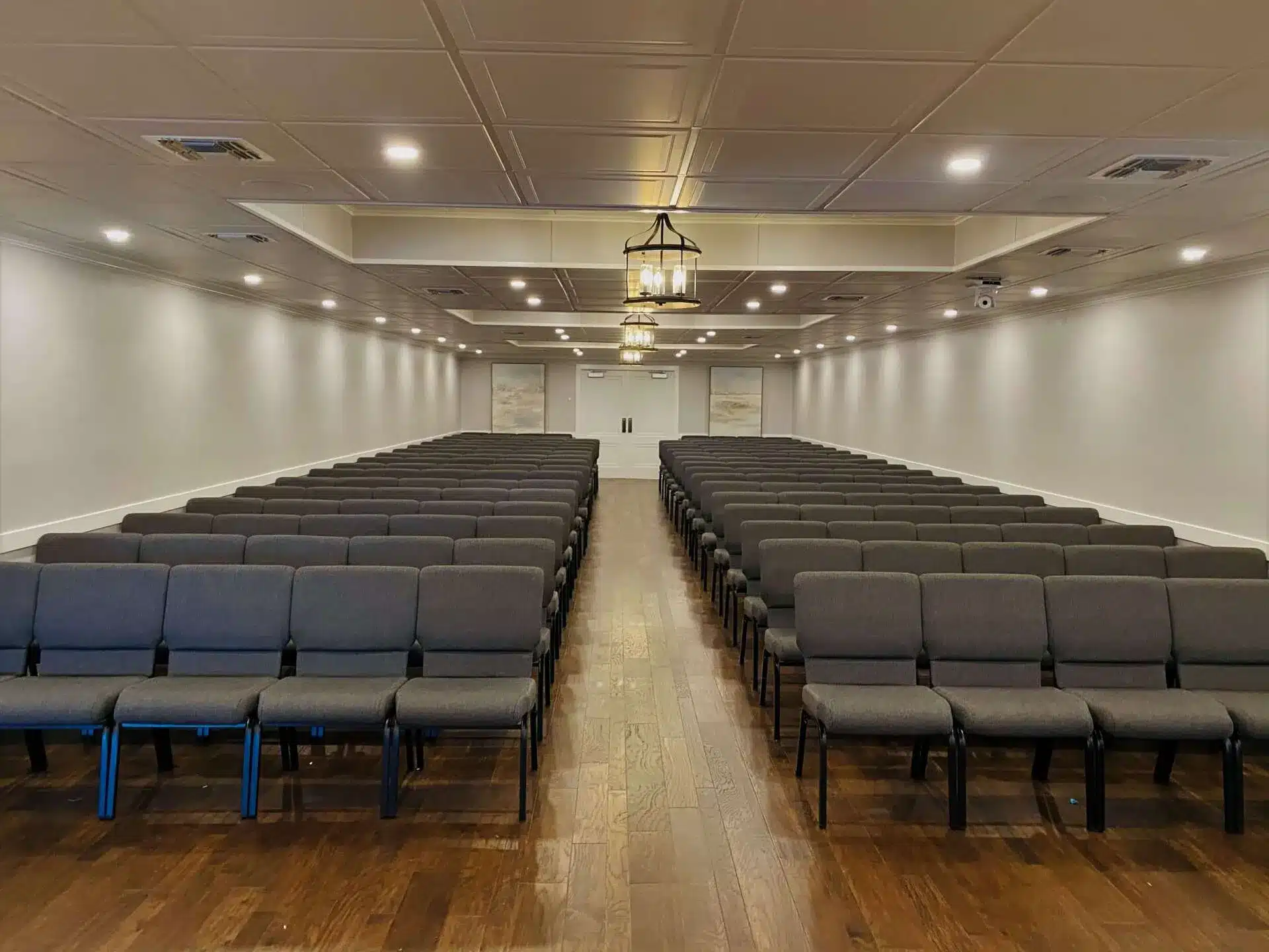 Nestled in the heart of Elgin, Texas, our Offsite Viewing and Funeral Service Chapel welcomes up to 200 guests with a serene embrace, blending modern elegance with the region’s rustic soul. Enveloped by native grasses and a proud Texas flag, this sanctuary reflects the timeless charm of Central Texas, offering an expansive yet cozy space for personalized memorials that honor every life uniquely.